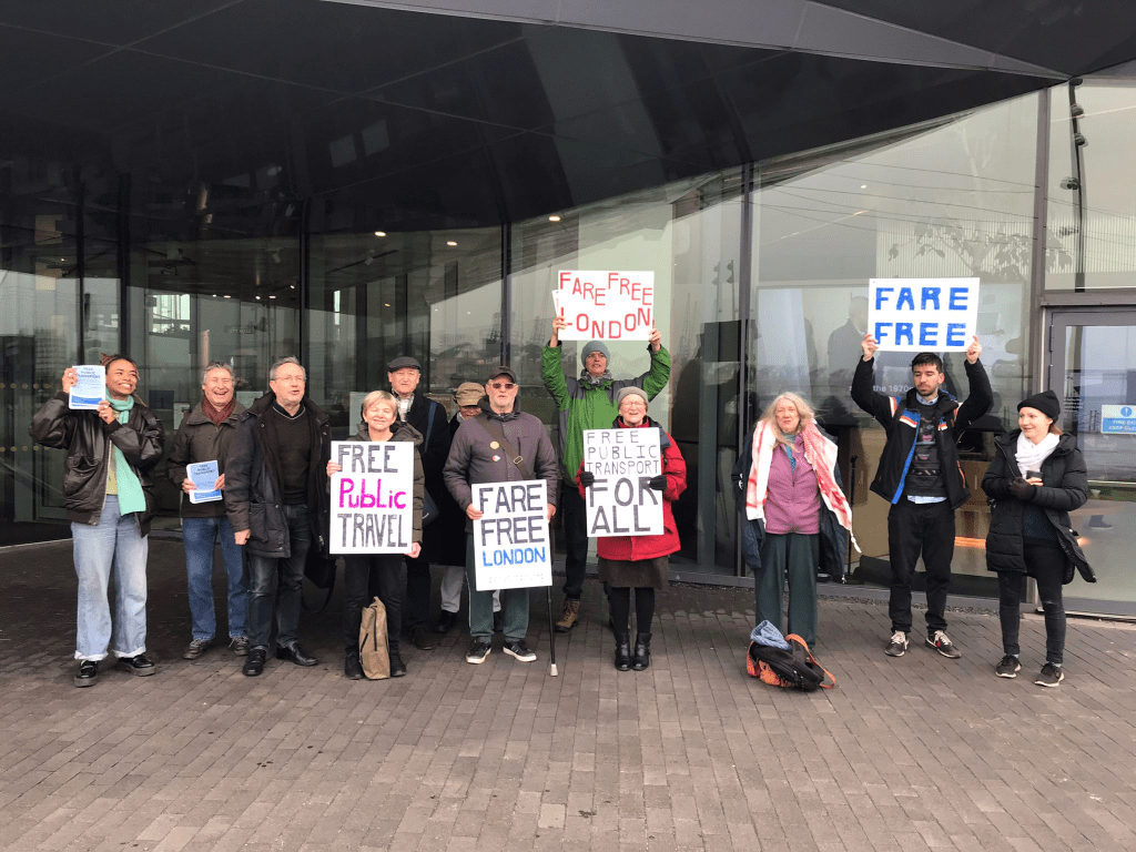 We are part of the Fare Free London (FFL) campaign. FFL is an organisation comprised of community groups, trade unions, environmentalists and other citizens who have come together to campaign for free public transport in London. Free public transport opens the city to everyone, and is central to a vision of London as a city where people, their health and the lives they live, come first. Free public transport is socially just, supporting the lowest-income households that are least likely to have a car. We are calling for: