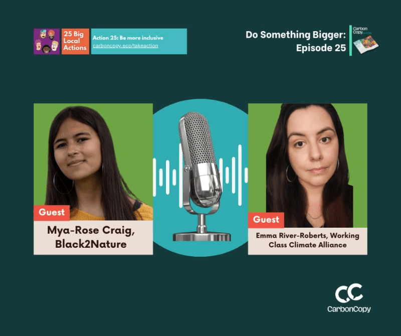 We joined Mya-Rose Craig (AKA Birdgirl) on Carbon Copy’s latest podcast episode, to explore what it takes to make climate and nature engagement more inclusive to working class and other under-represented voices. You can listen to the episode by following this link.