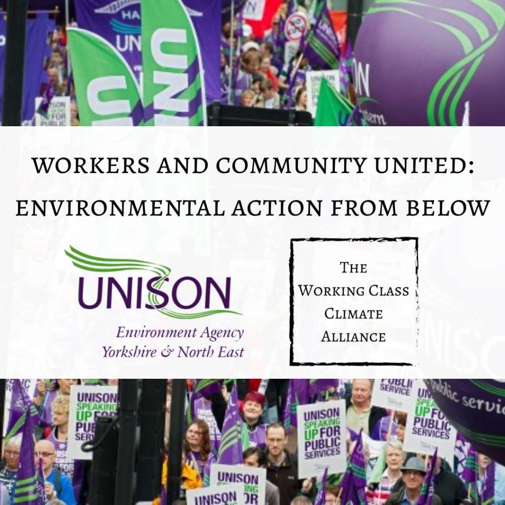 We are excited to announce the launch of Workers and Community United: Environmental Action From Below, a campaigning partnership between the Working Class Climate Alliance and the trade union UNISON (Environment Agency Yorkshire and North East branch).